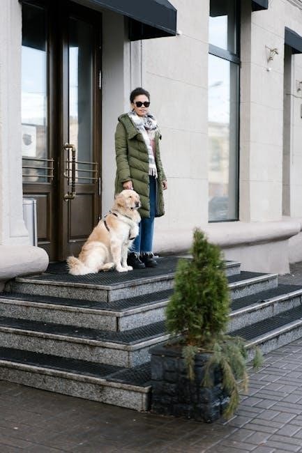 A Service Dog Certificate PDF serves as proof of a dog’s training and role‚ granting handlers seamless access to public spaces like restaurants‚ hotels‚ and public transport. It ensures businesses and establishments recognize the dog’s legitimacy‚ minimizing questions or challenges. The certificate’s professional format‚ often in PDF‚ makes it easy to present and verify‚ facilitating a smooth experience for both handlers and service providers. This documentation is crucial for ensuring equal access and compliance with accessibility laws.